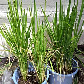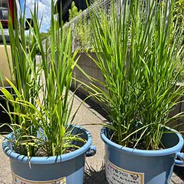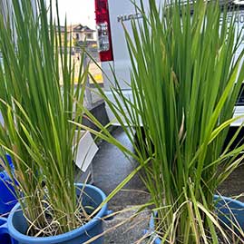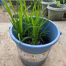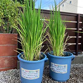 - 植えてから約一か月後の様子です。背がぐんぐんと伸びてきて、皆さん順調に生長しています。