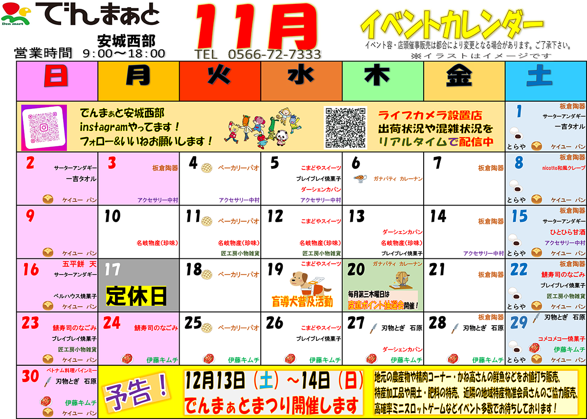 (カレンダーの内容は一部変更する場合がございますので、ご了承ください。)