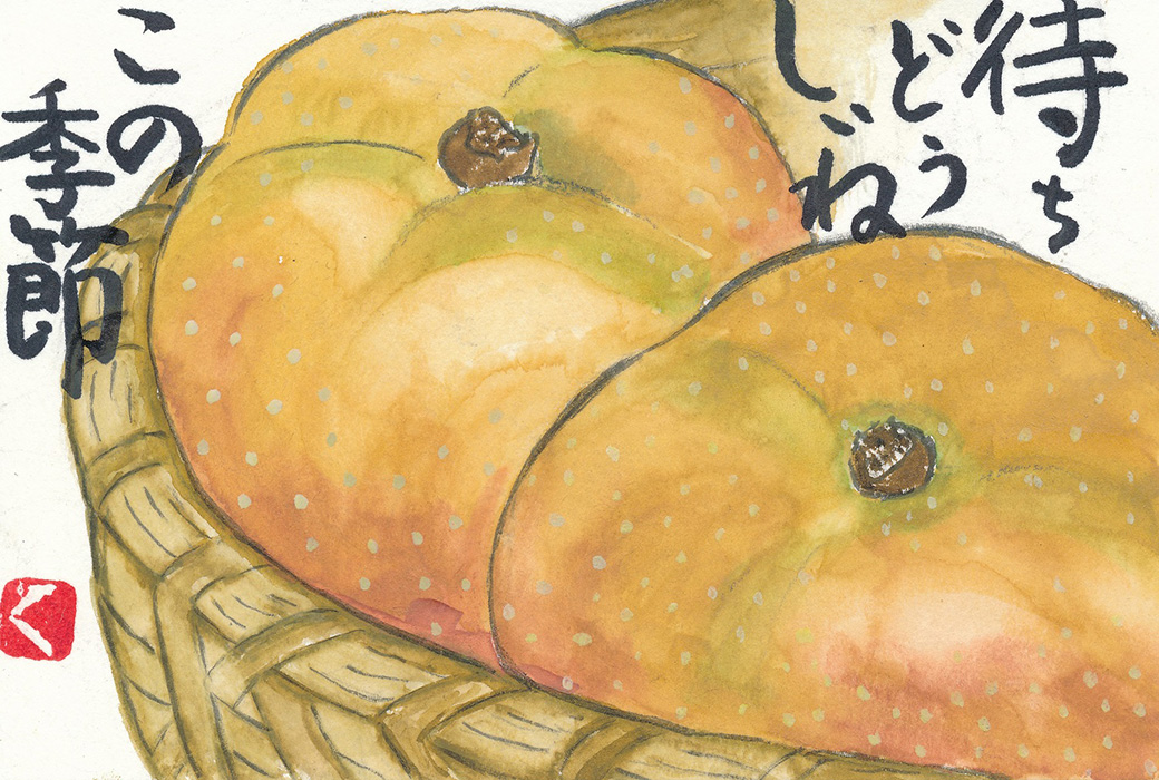 毎年産直センターから、お世話になった方へ梨を贈っています。届いた方が喜んでくださるので、いつも梨の出回る頃を心待ちにしています。今回、じっと眺めて描いた梨が入賞できて、とてもうれしく感謝しています。