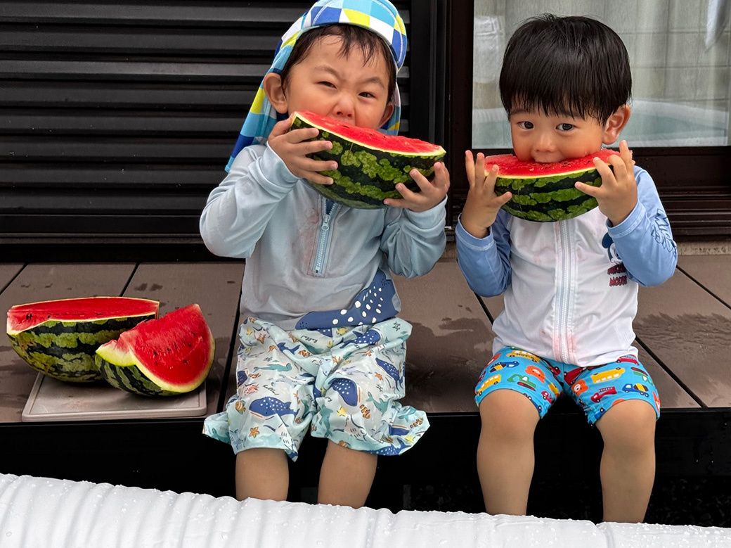 ばあばの畑で、実が小さい時からお世話したスイカを頬張る瞬間をとらえました。夢中で食べている最中にもかかわらず、カメラ目線をくれた子どもたちに感謝です。このたびは賞をいただき、ありがとうございました。