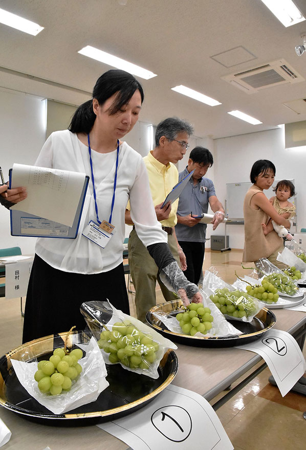 同普及課の山口千明専門員は「玉の肥大や味も良く、すばらしいものがそろっていた。生産者の努力の結果だと思う。審査を務めた消費者の皆さんには、この地域の果実のすばらしさをPRしていただきたい」と講評しました。