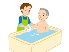 集団浴槽・個人浴槽・リフト式の特殊浴槽(ライナーリフト)から、ご希望や身体の状況に合わせてお選びいただけます。明るく景色の良い浴室でゆったりとおくつろぎください(血圧・体温の高い方、体調の悪い方などは清拭のみ、または入浴を控えさせていただくことがありますのでご了承ください)。