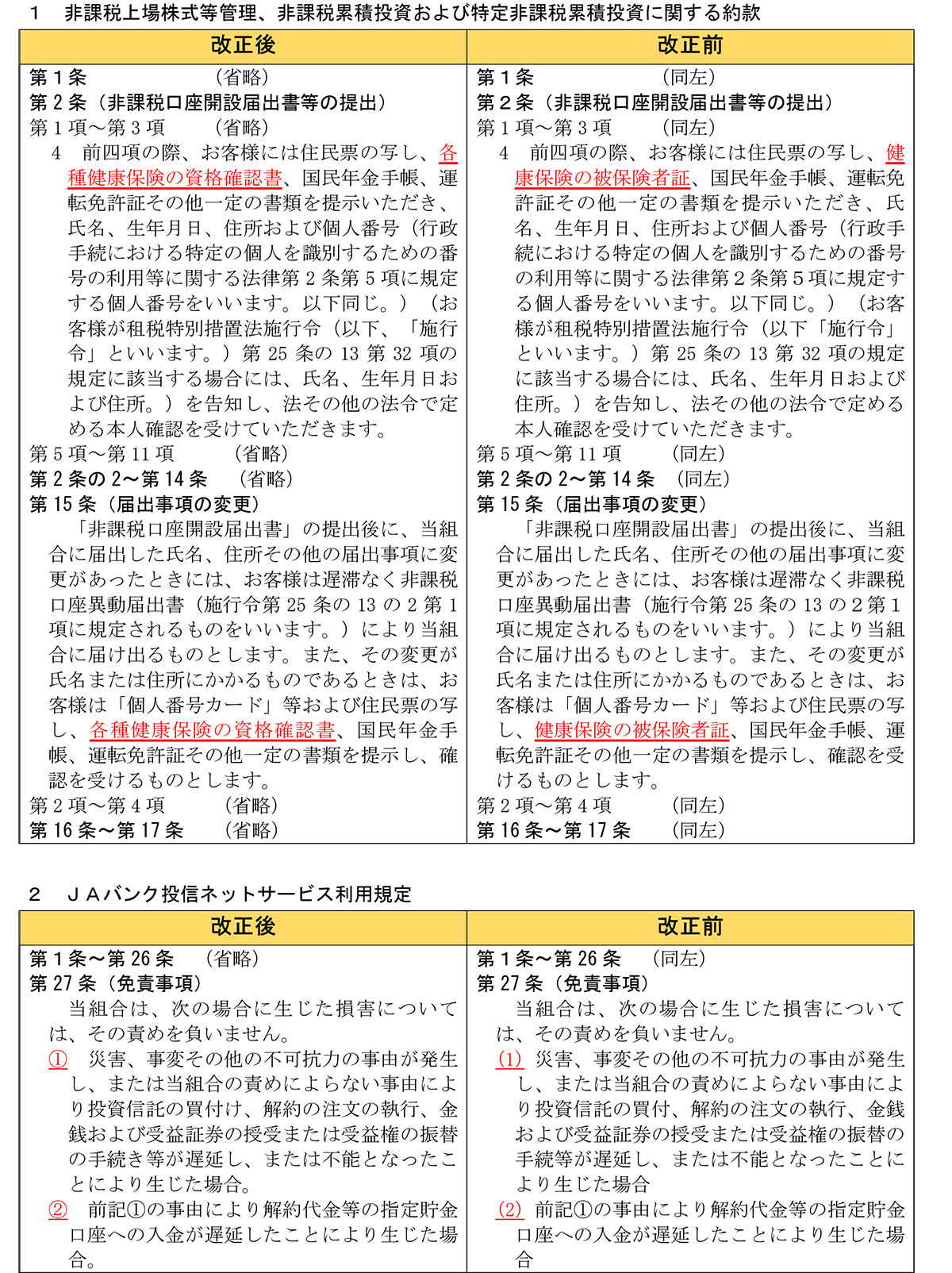 非課税上場株式等管理、非課税累積投資および特定非課税累積投資に関する約款等の改正のお知らせ